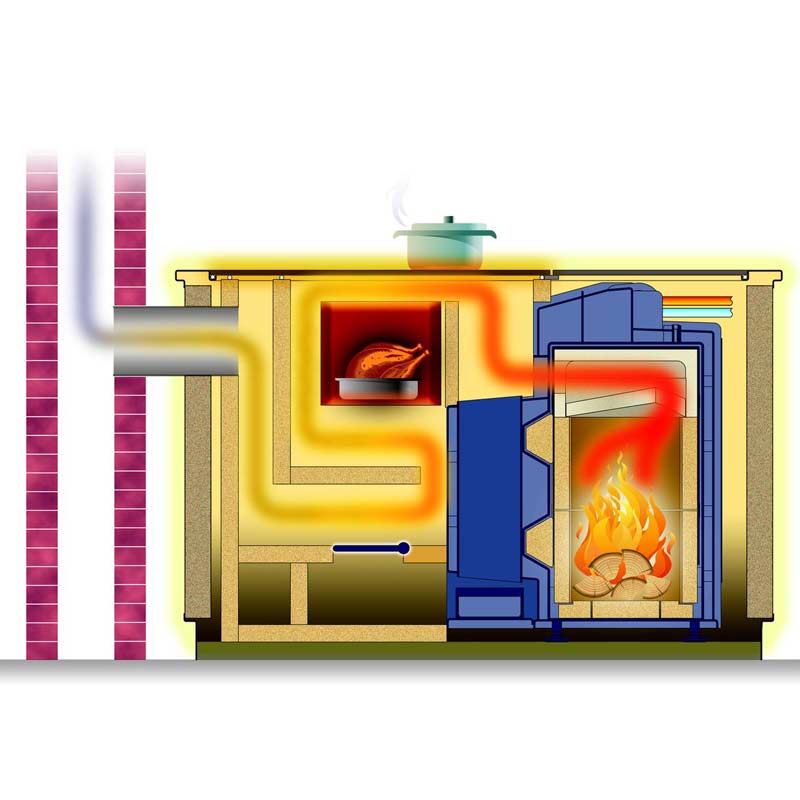 Die Heizgase strömen auf die Herdplatte und um das Backfach (Küchenherdfunktion).